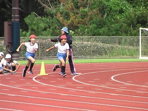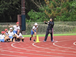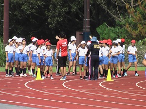 10月に行われる市小学校体育大会に向けての練習を開始した6年生。運動場が狭いので、今日はうのけ総合運動公園で現地練習を行いました。直線コースで本番の雰囲気を味わいながら、100メートルを走りぬきました。