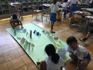 図工「おって たてたら」(1年生)