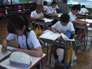 夏休み中に学習した力を確かめるために、どのクラスでも確認テストを行っています。夏休み中も自主的に計画的に学習できたかな?ついた力をしっかり確認して、2学期の学習もがんばりましょうね。
