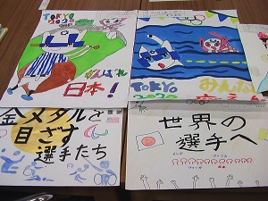 2020オリンピック・パラリンピック教育実践校である本校児童らしく、何人もの児童が、夏休みの「2020オリンピック・パラリンピックに向けたポスター」応募作品に挑戦しました。「世界の選手を応援しよう」のテーマにふさわしい作品ばかりで、オリンピックへの期待が膨らみます。