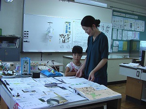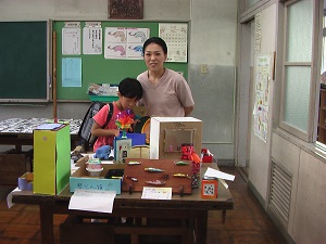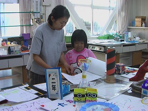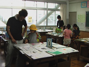 夏休み作品展を親子で楽しんでくださっています。どの作品からも工夫と苦労が感じられるので、見応え十分!