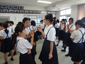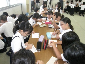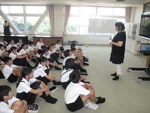 今日は学年登校日、夏休みも後1週間になりました。児童は、久しぶりに会うクラスの仲間たちと夏休みにあった出来事を楽しそうに話していました。