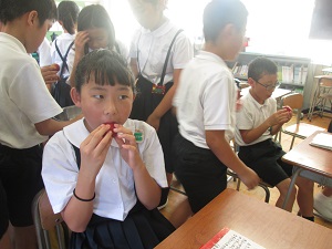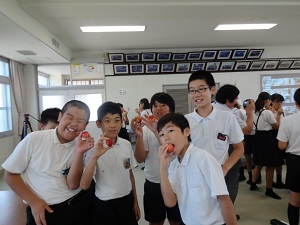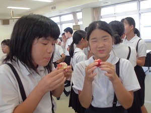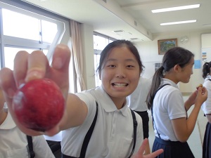 夏の暑い日も6年生は木津桃の水やりを分担して行ってきました。木津桃の実を食べる児童はみんなうれしそうです。