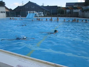 水泳記録会も行われ、夏休みに練習した成果を披露する場面もありました。