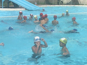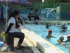猛暑の中、プールに涼を求めてくる子ども達。
