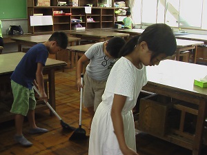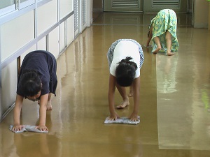集中して一生懸命掃除しています。これからも学校を大切に使ってね。