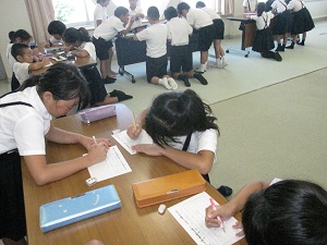児童は平和な世の中にするため,自分にもできることを一生懸命考えていました。