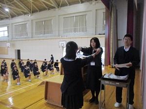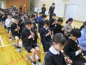 今日の3・4限目は在校生練習がありました。礼法や門出の言葉、歌の練習もしました。たくさんあったのに、1~5年生はとてもよく頑張っていました。4限目は6年生の入場に合わせて演奏する4・5年生の合奏練習がありました。歩くスピードと曲の速さなども調整して、ばっちりになりました。明日はいよいよ予行です。6年生の立派な姿をぜひ在校生は目に焼き付けてほしいと思います。