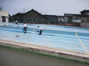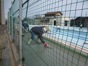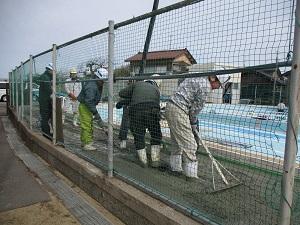 2025年3月12日 17時41分今日もとても暖かな一日でした。このお天気の間にプールの外周工事が本格的に進んでいます。プール内部の防水シート工事や松の木の雪吊り外しも行われ、あちこちでの工事が行われた一日でした。