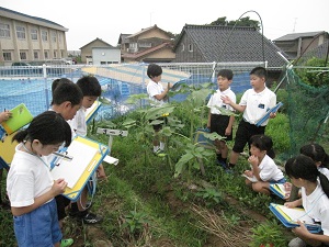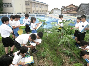 こまめに草むしりをしていたのですが,まだまだ草は元気です。観察が終わった児童から草むしりを行いました。