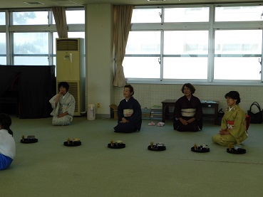 日本的な体験をしてみようと始まった和クラブでは、茶道の先生4名にお越しいただいて茶道体験をしました。