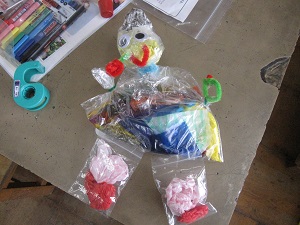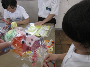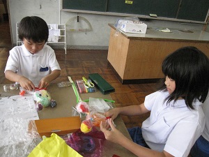 図工で袋に色んな紙を入れ、それぞれ思い思いのものをつくりました。