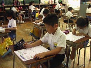 夏休みを前に、どの学級でも学期末テストが行われています。通知表を左右する大切なテストなので、子ども達は真剣な表情です。1学期、どれだけ力がついたかな?自分の強みと弱みを確かめ、夏休みの家庭学習につなげましょう。