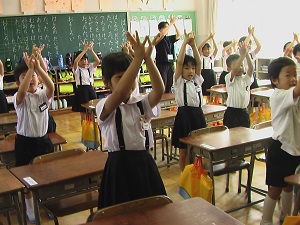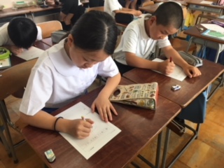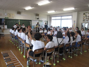 オリンピック・パラリンピック教育実践校である本校にぴったりの選曲でしたが、今月の歌「パプリカ」も今日が最後。1ヶ月間、1・2年生は、運動会を思い出しながら、