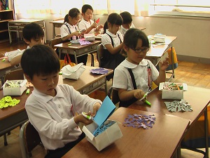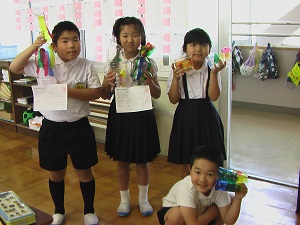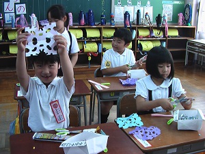 七塚っ子は、図工の時間が大好きです。学力調査の質問紙でも、他の教科より「図工が好き!」と答える子が多いです。楽しんで作った作品は教室の内外に飾り、他の友だちにも楽しさをお裾分けしています。