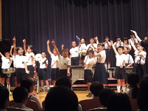 曲は「パプリカ」です。練習した成果を発揮し、すばらしい歌声と合奏を響かせてきました。