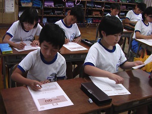 2~6年生で、年2回QUテストを行っています。QUは、「やる気のあるクラスをつくるためのアンケート」「いごこちのよいクラスにするためのアンケート」「ふだん(日常)の行動をふり返るアンケート」の3つの心理テストから構成されています。子ども達が、安心してクラスで学習できているか調査し、子ども達への的確な支援や教師の指導改善につなげています。テストの結果は、本人を通して保護者の方にも伝えます。