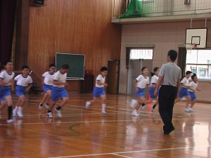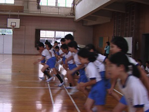 前日グラウンドにはボール投げの準備もしていたのですが、あいにくの雨で室内でのテストのみとなりました。4~6年生が、前年度の自分の記録を更新しようと、握力やシャトルランなどの種目に取り組みました。