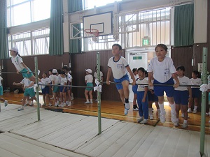4年生が宇ノ気小学校で器械運動交歓会を行いました。
