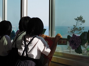 きれいな七塚の海を守りたい子ども達の気持ちが、クジラを呼び寄せているのかも知れません。取材の様子は、本日6月6日(木)午後6:10からのNHK「かがのとイブニング」で『クジラが見える学校』として放映される予定です。