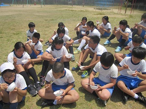 今、七塚の海に連日クジラが目撃されていることが、新聞等で報道されています。子ども達の関心も高く、休み時間毎に窓からクジラを探しています。