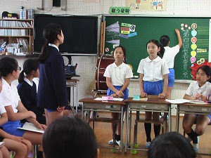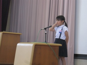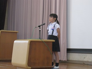 長い原稿を覚え,堂々と話す姿がとってもすてきでした。本番でも七塚小の代表として頑張ってほしいです。