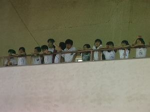 次は、自分たちの番!と、3年生も小体育館から見学しながら応援していました。