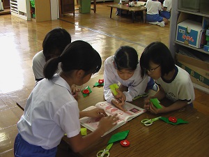 お世話をしてくださっている西谷さんに実の間引きの仕方を教わりました。