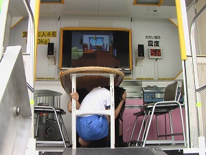 避難訓練に引き続き、4年生が起震車体験を行いました。