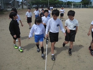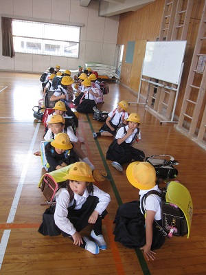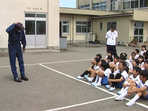 初めての訓練に、どの子も真剣な表情で体験したり話を聞いたりしていました。