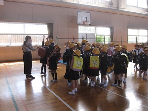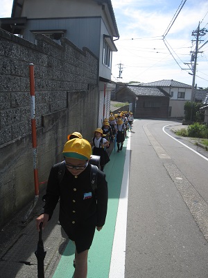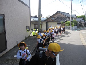 6年生が中心となって子ども100当番の家の確認などをしていました。