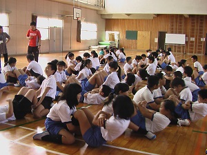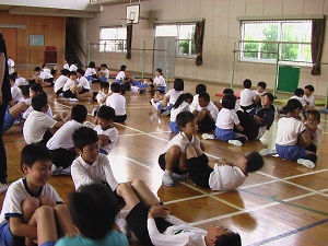 4~6年生は、体育館でげんきっず体操の後、体力テストに向けて上体起こしに取り組みました。20秒間で10回以上できる子がたくさんいて、昨年度から体力アップしていることが実感できました。