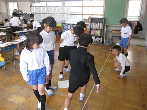 3年生が長さについての学習をしています。今日は色々な長さについて調べました。
