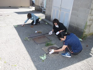 4年生が器械運動交歓会で鉄棒を使用するため,職員が鉄棒をみがきました。