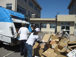 資源回収を行いました。段ボール・雑誌・新聞・空缶・衣類など様々なものを回収しました。PTA体育奉仕部を中心にした保護者と児童、教職員が回収作業を一生懸命行いました。暑い中での作業でした。本当にお疲れ様でした。