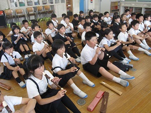 リコーダー講習会を行いました。子ども達はリコーダーに興味津々でした。リコーダーの先生から魔法をかける言葉を教えてもらいました。(子ども達はつぶやきながら帰りました)