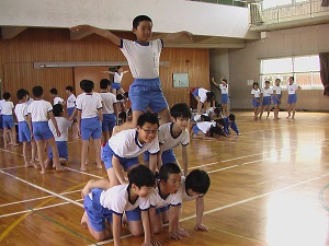 今年度も美しい組体操をめざして、5・6年生ががんばっています。特にピラミッドやタワーの練習では、ケガのないよう真剣な表情です。でも、技が決まると、満面の笑みが…本番も期待しています!