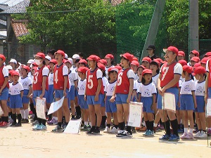 健民体育館を想定してのいつもとは違う体型での運動会全体練習。