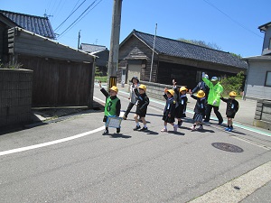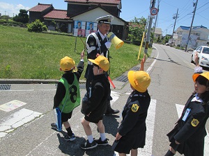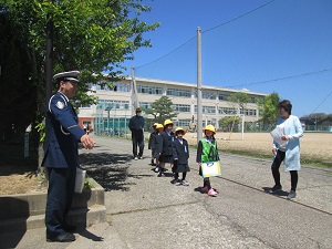 警察の方の指導の下、グループになって安全な道の歩き方や横断の仕方を実際の道路を使って練習しました。引率してくださったボランティアの皆様、各チェックポイントで見守ってくださったPTA生活指導部の皆様、ありがとうございました。