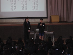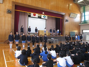 任命式では、各学級代表・委員長の抱負を聞きました。七塚小のリーダーとしてがんばってほしいです。