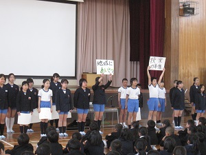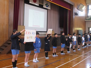 まなびぃずから学習について、6年生から生活目標についての発表がありました。