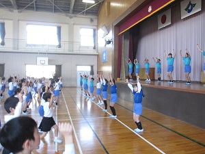 2019年5月8日 17時38分げんきっず体操を全校で踊りました。
