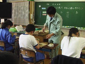 市教育委員会のスポーツ文化課・折戸さんと亀塚さんを講師に、社会科の授業の一環として、6年生が土器づくりに挑戦しました。子ども達は、弥生時代に思いを馳せながら、思い思いの土器を作っていました。乾燥させた後、みんなで焼くのも楽しみにしています。