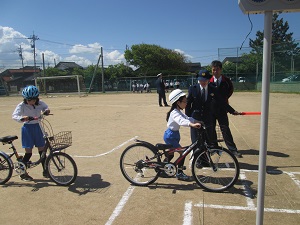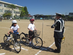 2019年5月7日 16時04分4年生が、警察署の方々から自転車の安全な乗り方を教えていただきました。運動場に作ったコースを使って、一人一人確認しながら乗りました。教えていただいたことをしっかり守って、安全に乗ってくださいね。
