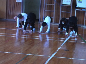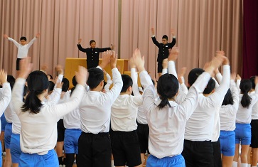 ① 今朝のげんきっず体操は6年生にとって最後の体操でした。
