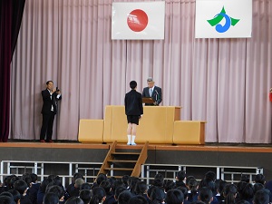 その後、全校児童の前で授賞式。