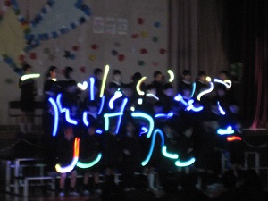 3年生の「モチモチの木」です。群読の合間に6年生のエピソードを入れたり、ライトを使った演出が素敵でした。