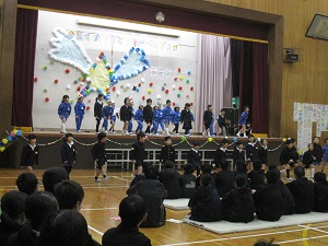 5年生の発表です。6年生が昔お世話になった先生からのメッセージ紹介や歌が素敵でした。体育館に響き渡る歌声は圧巻でした。