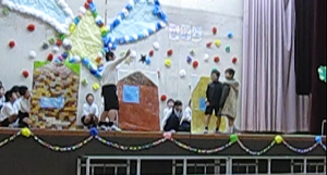 6年生の出し物も素敵でした。歌声と楽器の演奏を聞きました。その他、5年生が作った感謝の気持ちを伝える合唱、くす玉割りなどが行われました。