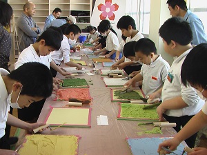 3年生が、技能五輪国際大会チャンピオンの銭丸肇次氏をお迎えして、左官の仕事の体験学習を行いました。銭丸さんから左官の魅力や技能オリンピックの話を聞いた後、実演を見せてもらいました。子ども達からは、「わあ、きれい!」「さすがチャンピオン!」と歓声が上がりました。そして、優秀な左官のプロの指導を受けながら、子ども達も壁塗りに挑戦!本物の道具を使っての貴重な体験をさせていただきました。ありがとうございました。
